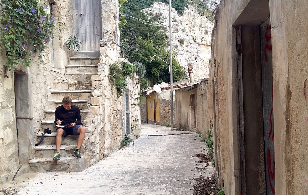 Unfortunately I feel overly tired and drowsy despite a good nights sleep, which worsens during the walking and climbing of several stairs. Is that now the final traveling exhaustion that seeps in, taking it's toll after crossing the alps and heading from city to city without breaks for more than a month? Thankfully Ragusa is small, and though running around here is entertaining and immersing, I decide to take it slow after having seen the main parts, buildings and tiny streets. I sit down at a street that seems abandoned to me, spending the rest of the afternoon drawing in my travel sketch book. Later on I rejoin with Cecilia and as she has deep understanding for my current condition due to her travel experience, we stay home for the rest of the day, drawing, talking, cooking and simply having a good time together without further sightseeing and running around.