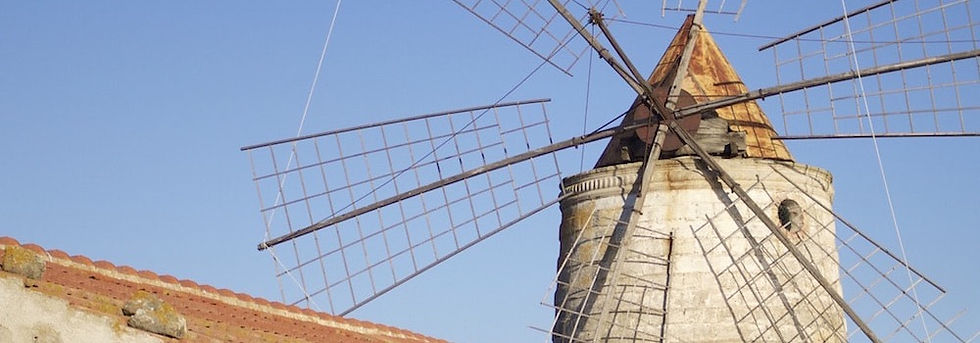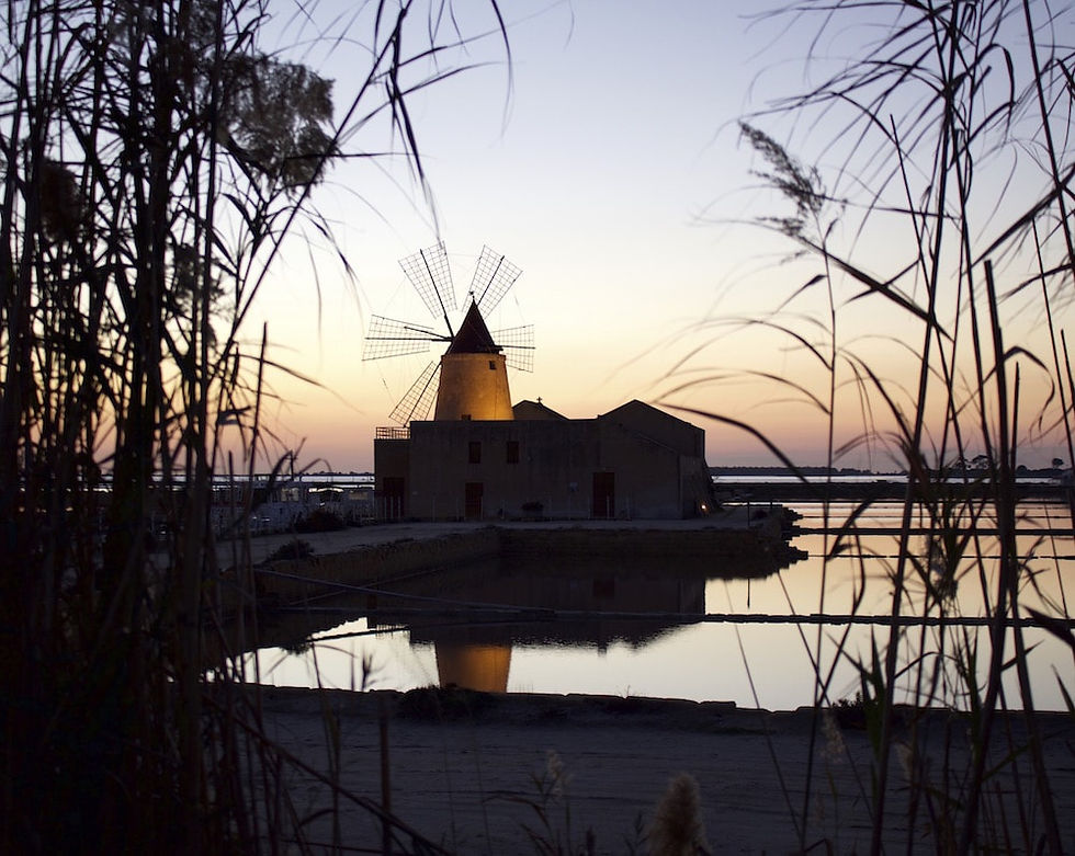 Fortunately we started the day early enough, once we are down from Mount Erice we still have time to go to Marsala's salt basins and fetch something to prepare a sandwich for later. While we head in the direction, the from postcards familiar windmills are spread all around the place and being puzzled at first large white piles are on the side of the roads. This is the salt they win in the flat basins, though I would constantly keep on declaring it to be snow. I eagerly jump onto it, in order to sink into the white massive salt pile, but indeed as it is neither snow nor sand, the surface of the salt is hart and solid, the salt crystals have melted together superficially.