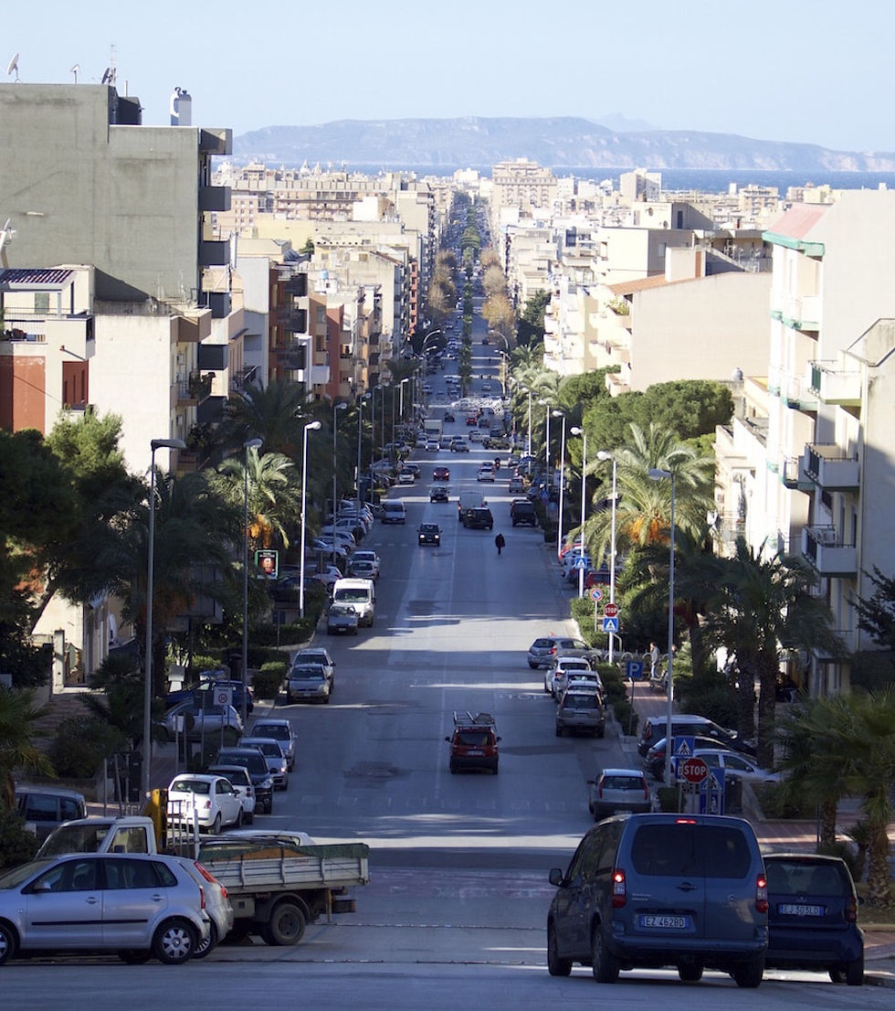 After about an hours drive from Palermo by car, we arrive in Trapani, do the check-in at the hotel room we booked for one night and then walk around in Trapani's center, which seems to be deserted due to the siesta. Therefore we walk along the coastline, climbing around the rocky stones deeper into the blue endlessness of the ocean, from afar a long walkway is to be seen with a cubic building at the tip. Gianfranco soon declares that he is hungry, as well as I am, so we try hard to find something that is open, which is harder than we thought. After finally finding something we fill our stomachs and we are able to proceed walking the area.
