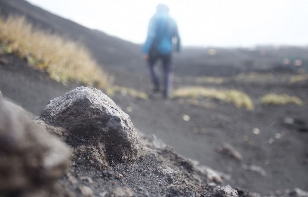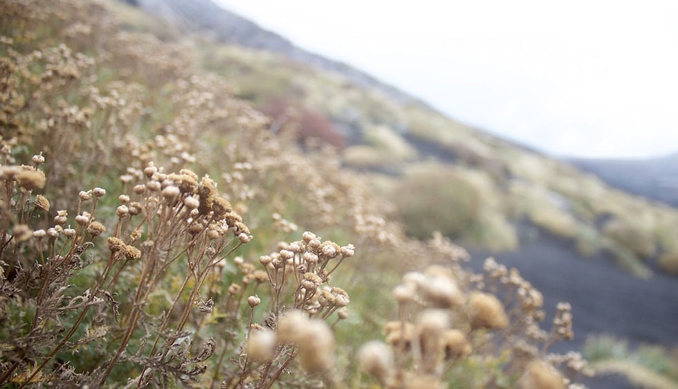 The bus leaves from Catania, pausing halfways in a village called Nicolosi, offering time for taking a coffee. Once we cross over the sign which indicates that we are now entering into the national park of Etna, the landscape starts to transform by the minute. The earth's color becomes darker and darker, as does the surrounding and the feeling that goes with it. The dark soil and the roughly structured rocks are blending into each other, whereas the most remarkable contrast with yellowish green bundles of grass which dot the darkened earth start to pop out. Accompanying the whole scene are the clouds of heavy fog, which add to the mystic bizarre scene that lies in front of me.