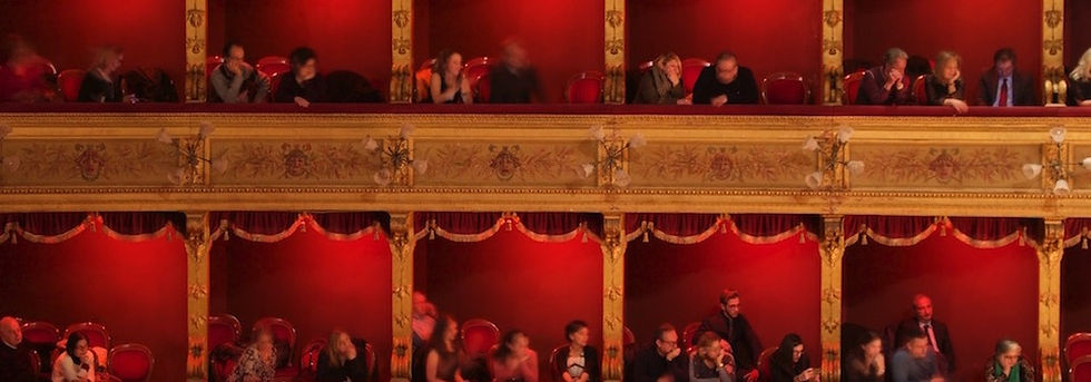 The most impressive about it though is the inside, which I would primarily see when Gianfranco gets us cheap tickets for a rehearsal of Carmen. The opera's vast round auditorium is stunning, with several circular floors containing separated sections for the audience, offering a wonderful view downwards onto the large stage from almost any sitting place. Everything is covered by a matt gold layer, forcing the eyes to readjust several times in face of this overabundant load of prestige and heavy weighing significance, statues attached to the wall seem to be in unity growing out of the theater, not appearing to have been simply placed here. Dark deep bordeaux red harmonizing with the gold is the omnipresent color of the curtains and cushioning of the seats and balustrades, together with the dimly lit lights this adds to the soft, prestigious ambiance while situated in front of the enormous room, those construction may be a masterpiece regarding the fact that this vast space is held without additional columns or visible balks. The ceiling is adorned with gold as well, flowing around various paintings, and I am told that the ceilings middle circle is slightly set back in order for air to circulate out and in of the enormous, room. At the flat bottom additional seats are placed, further up the ground levels off and holds the orchestra and it's numerous music instruments and professional players. When a the play is on the go, flower shaped lamps around all the circles dim the whole room, simultaneously red lights go on in the separated sections that hold up to a handful of people, touching their inhabitants in a layer of red. The focus is on the stage now..