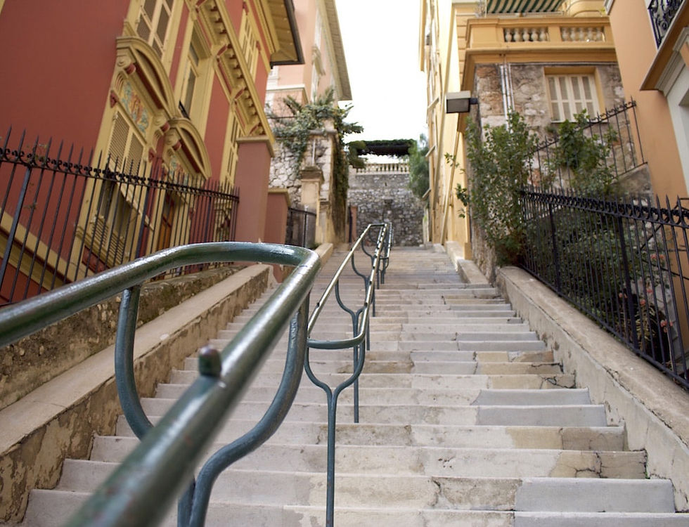 My last stopover is the uplifted platform in which the old center and various facilities such as old Palace of Princes with a large Square in the front, that edges framed by canons and piles of canon balls that are placed in direction of the city below. To the east side it offers a view to the dozens of industrialized apartment blocks of Monte Carlo, built along the steep slope of the mountain, various cranes sticking out here and there due to continual construction and extension works. The other harbor, Port Hercule sits below with luxurious yachts and ships anchoring along it's promenade.