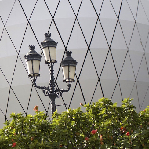 I encounter many interesting buildings on the way, various styles are mixed together. Some of them are similar like the once around the old harbor in Nice, walls painted with a strong shining color and a matching accent given by the window frames and doors. Strongly decorated buildings with arches over the entrance and dome shaped roofs are just right next to large industrialized apartment blocks, balconies which zick-zack out an inwards at the facade, giving it a modern and lively look. In the middle a high building sits prominently overlooking everything and seems to be the highest in vicinity, with a structured pattern in front of the glass facade and small bridges connecting two towers in airy hight. I enjoy to stroll around while getting on higher levels constantly.