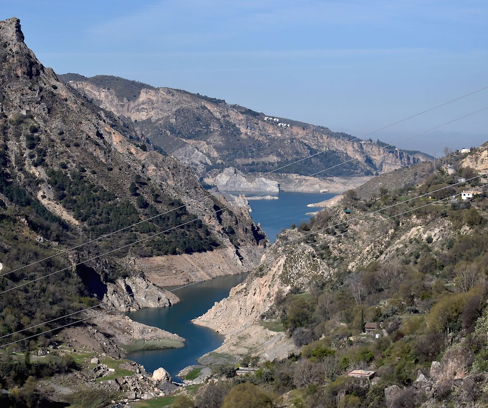 Too late we get out of our cave like appartment located in Albeicin in Granada. We walk the tiny streets with steep stairs climbing downwards, pass the cities center, grab some supplies for the day and walk to the place where the busses to Güejar, a small village, are supposed to leave frequently. We stand there puzzled and uncertain - oh how often I had those feelings, especially in Italy, standing or heading somewhere with no clue if it indeed is the reckoned place. After a while the yellow line appears from around the corner, we are stretching out our arms to get the driver's attention and hop on quickly. During the ride Sierra Nevada seems to be getting closer and I am excited and eager to get my feet back on mountainous terrain, working them hard to climb up the steep and stony slopes. I expect a terrific landscape with peaks covered in snow and juicy green blooming valleys with freezing cold water running splashing in the wild river bed beneath. Gradually the street is climbing upwards and winds itself snakelike through large rocks, and suddenly opens up the view onto a lake that lies glistening, somehow welcoming in the natural water basin, those walls are made of the mountain rocks and stones.