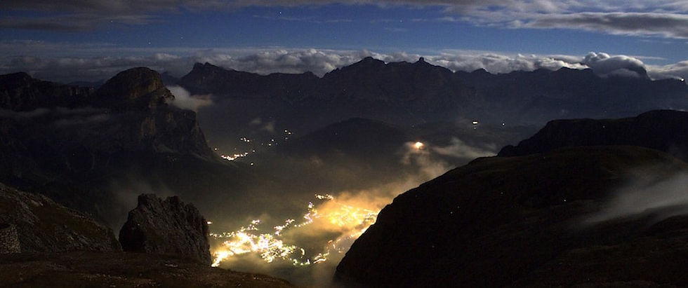 The way up to Col Visentin is not overly too hard, and I soon arrive in front of a quite bizarre scene. Lots of antennas and weird metal structures are put on top of this mountain right in front of the Refugio. Is here the Refugio or did I land at some kind of observation station? But sure, there is also a little shack amidst it, and I enter there and find a couple with their older son sitting there. I have a rest, change into other clothes and put down my backpack into the dormitory room. Later at night, once darkness has set, I step outside into the cool mountain air and find an amazing view. Just in front of me I see all those lights on flat surface and somewhere - somewhere - still far but now already in visible reach, there is Venice. Sitting here on the mountain in the dark observing the flickering lights shining up till here, my thoughts wander off distantly.